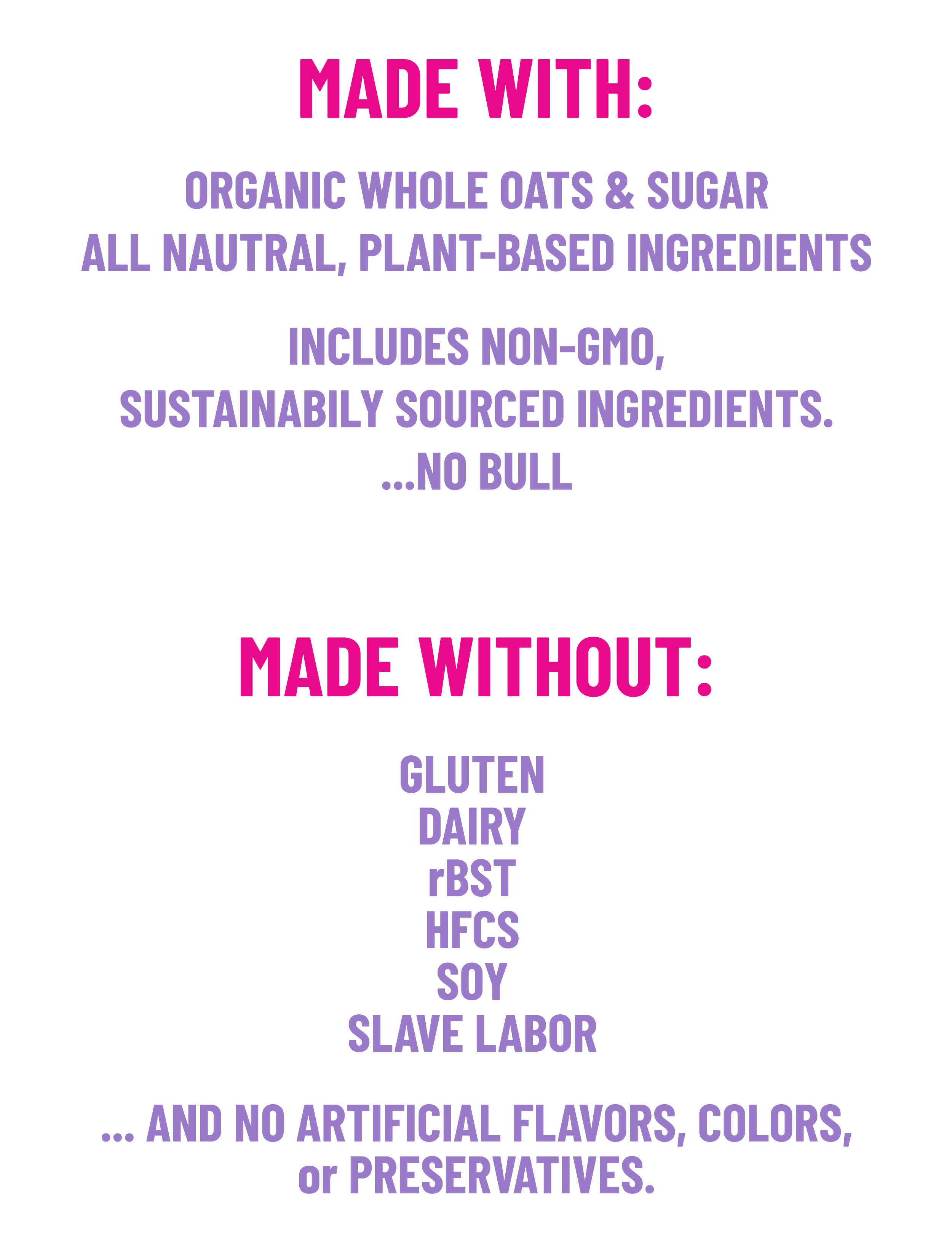 NO BULL is all natural, certified vegan, gluten-free, soy-free and includes non-GMO, sustainable ingredients to minimize environmental impact.